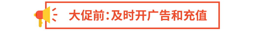 大促前1周,卖家可对店内热销品均开启广告,建议至少开10款,保障全面引流。大促前3天,卖家要使用微信充值足量广告金*,实时到账,不受假期影响,从而避免大促期间广告突然断线,导致单量流失。大促倒计时1天时,卖家可将广告预算上调至平时的3倍,出单关键词的出价提升30%。