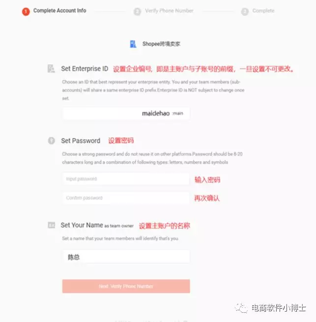 比如:陈总可以设企业编号为maidehao.那么其主账户的用户名就是maidehao:main,其员工阿雅的子账户就可以是maidehao:arya.