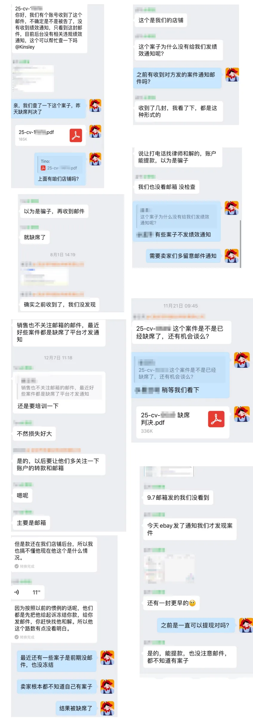 近期,接到一些不少卖家反馈:由于未及时查看平台通知或邮件,或误判为诈骗邮件而忽略,导致案件直到缺席判决阶段才被发现。此时,最佳处理期已过,卖家只能眼睁睁看着账户资金被强制划扣,甚至被迫放弃经营许久的店铺......