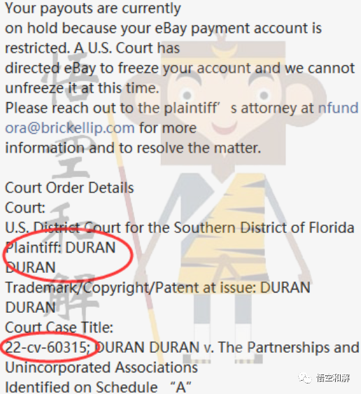 今天有eBay卖家反馈管理支付遭到限制,刊登产品的时候不小心使用了原告的文字商标。