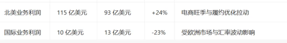 分区域来看,北美电商销售额同比增长10%至1271亿美元,营业利润同比增长24%,盈利能力显著提升;