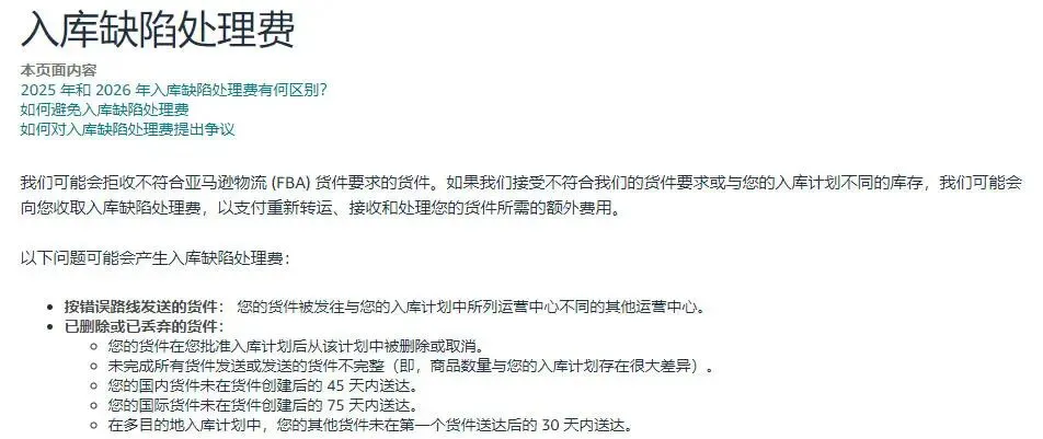 根据亚马逊官方规定,以下问题可能会产生入库缺陷处理费: