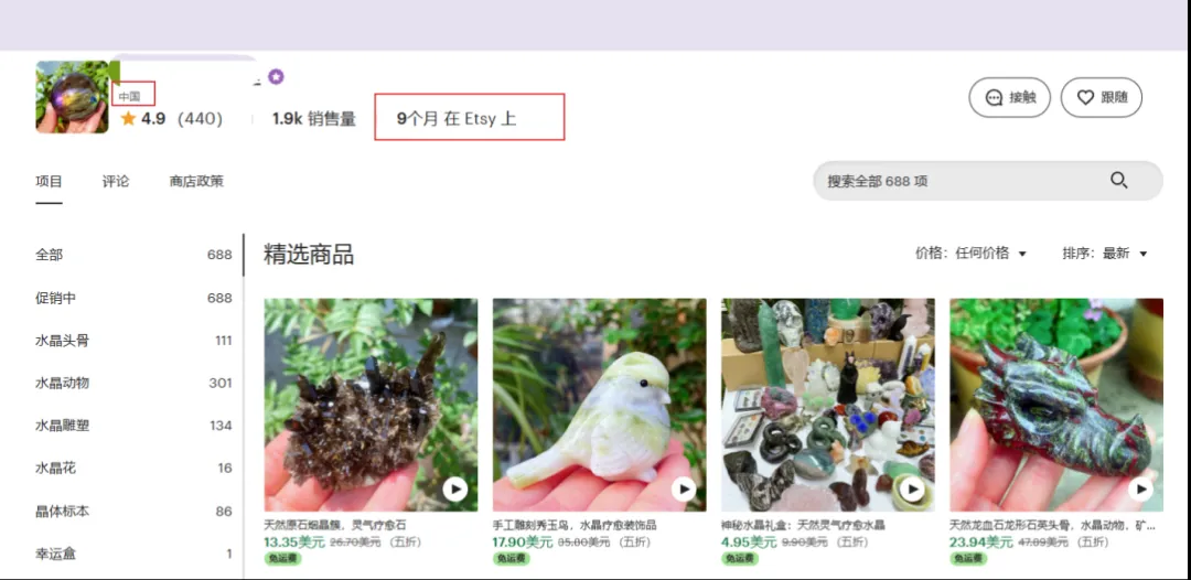 但现在不一样了,从去年开始Etsy就可以通过渠道进行入驻了,用中国大陆身份就能申请,不仅出单稳,而且下店还快。最早的一批已经满9个月了,已经做成了星级店铺,比如下面这一家。