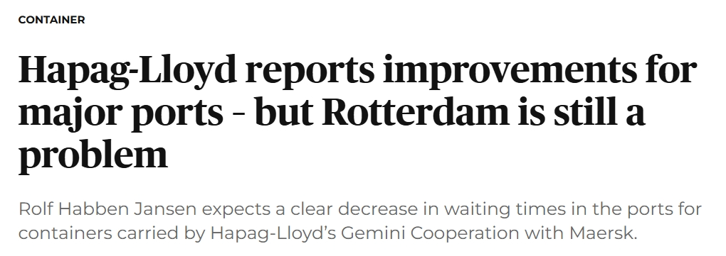 注意!赫伯罗特:欧港拥堵缓解!鹿特丹除外!