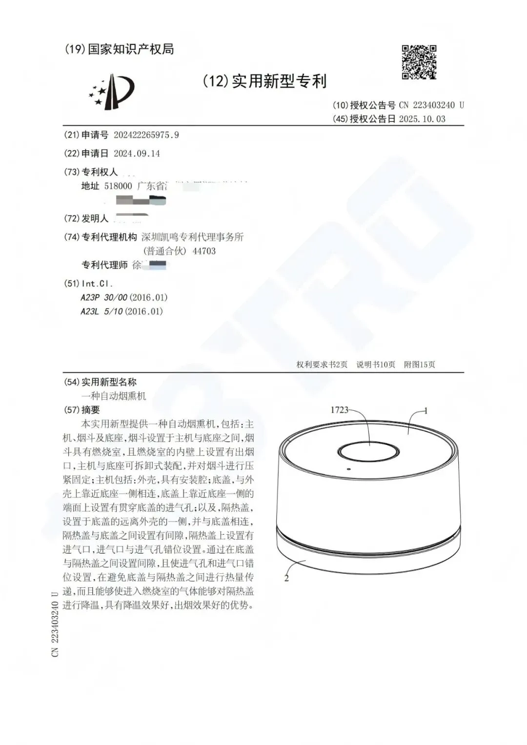 只要是自动烟熏器,产品包含以上 3 个核心点,侵权几率极大