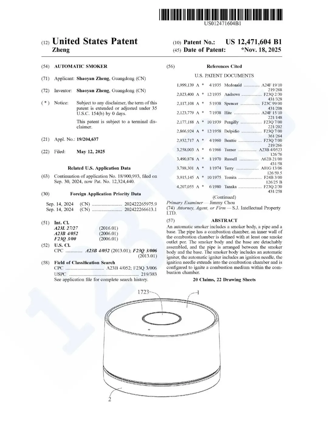 原告名下的有两条烟熏器的发明专利,其中有一条已经处于诉讼状态,且用优先权的方式,在25年6月拿到美国发明专利