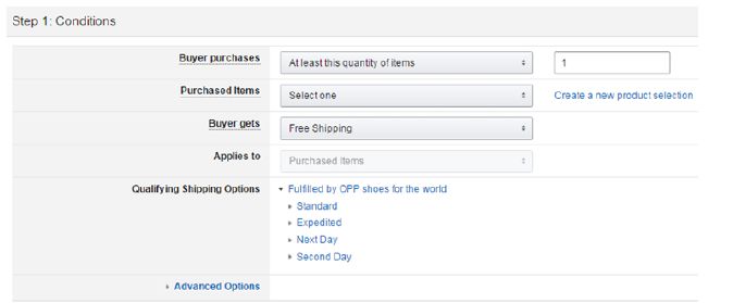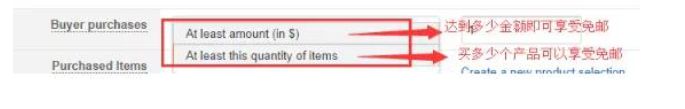 1、Purchaseditems:卖家选择一些产品作为free shipping promotion的对象;
