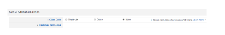 这部份是用来设置商品页面上的促销讯息,卖家可以自行更改这里面的内容,如果不想要自己改写促销讯息的话,使用亚马逊的默认设置就行了,如果卖家需要使用claim code 的功能,也可以在步骤 3 这启用 claim code。
