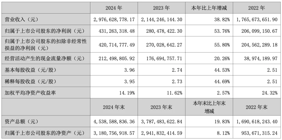 2024年全年,涛涛车业实现营业收入29.77亿元,同比增长38.82%,实现归属于母公司所有者的净利润为4.31亿元,同比增长53.76%。