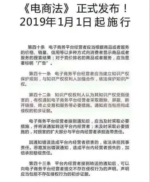 前不久,《中华人民共和国电子商务法》(以下简称《电商法》)正式通过,并将于2019年1月1日起正式实施。