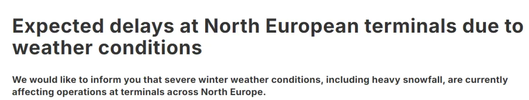 预警!北欧暴雪结冰!两大港口受阻,船司重要提醒!