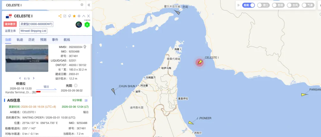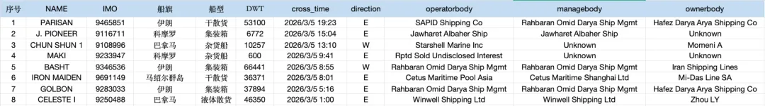 基于AIS数据,船视宝判断,3月5日共8艘船舶穿越霍尔木兹海峡: