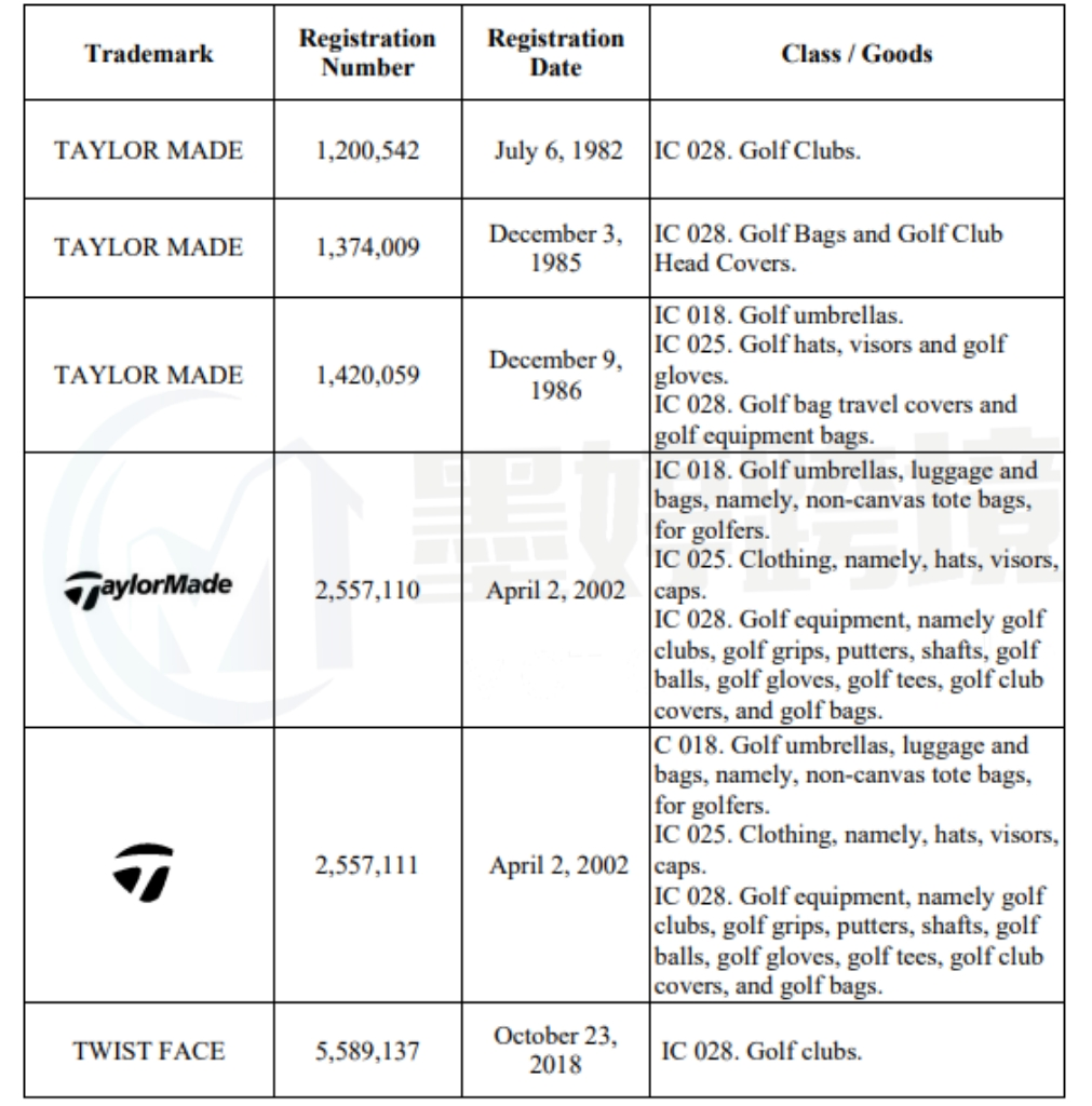 本案为商标侵权,涉及原告旗下注册9项图文商标,维权关键词:Taylor Made、TWIST FACE、SPIDER;注意:未经授权不可上架销售,建议有卖同款的卖家速速排查,侵权风险极大!