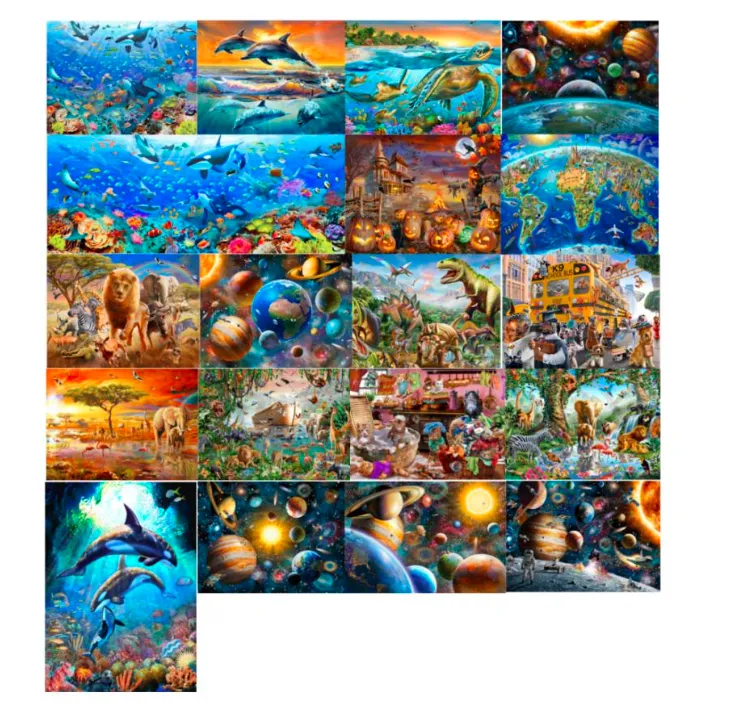 本案共涉及19个版权作品,主题涵盖宇宙、野生动物、自然等,该系列插画广泛用于拼图、海报、日历、帆布袋等品类,建议跨境卖家抓紧时间全面排查,未经授权请勿使用。