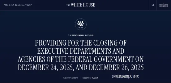 另据悉,CBP这一调整是由于美国总统特朗普已签署行政命令,指定2025年12月24日和2025年12月26日为联邦假日。