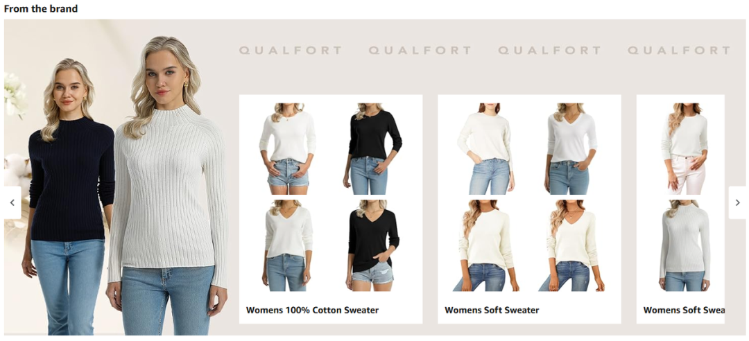 通过上述亚马逊的工具,结合历史受众画像等精细数据,品牌就深度触达潜在受众,实现进一步增长。短短几年,QUALFORT就从一个新品牌杀到毛衣品类全球前十的畅销品牌,年销售额达到1亿元。