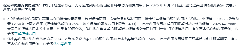 自2025年6月2日起,Z划算和秒杀商品可在高曝光度的推销位置展示,包括促销页面、搜索结果和详情页面,促销和优惠券费用将进行如下变更: