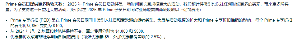 另外美国站点2025 年 Prime会员日活动将是一场时间更长且规模更大的活动