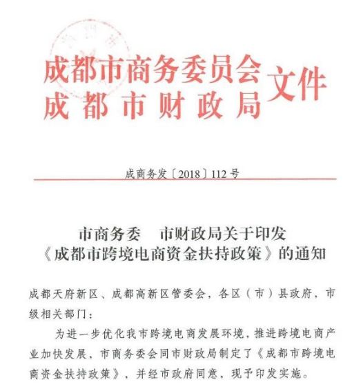 10月22日,成都市商务委、成都市财政局对外发布了最新的《成都市跨境电商资金扶持政策》。