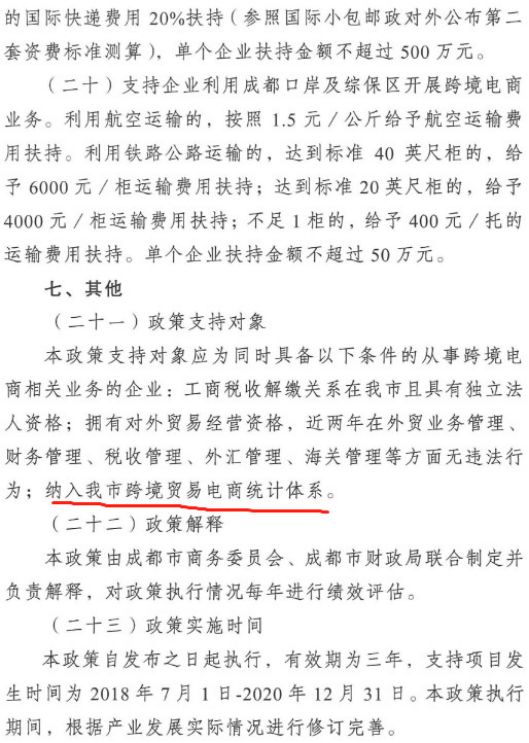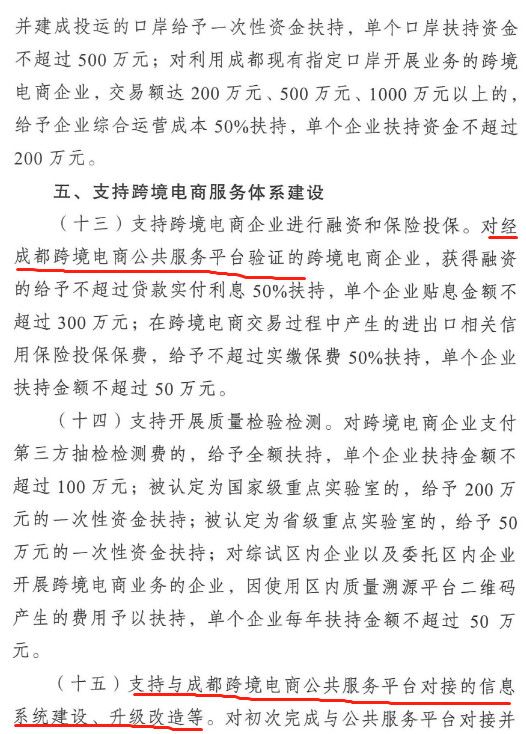 《成都市跨境电商资金扶持政策》部分内容如下: