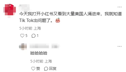 有网友表示:“今天我打开小红书又看到大量美国人涌进来,我就知道TikTok出问题了。”