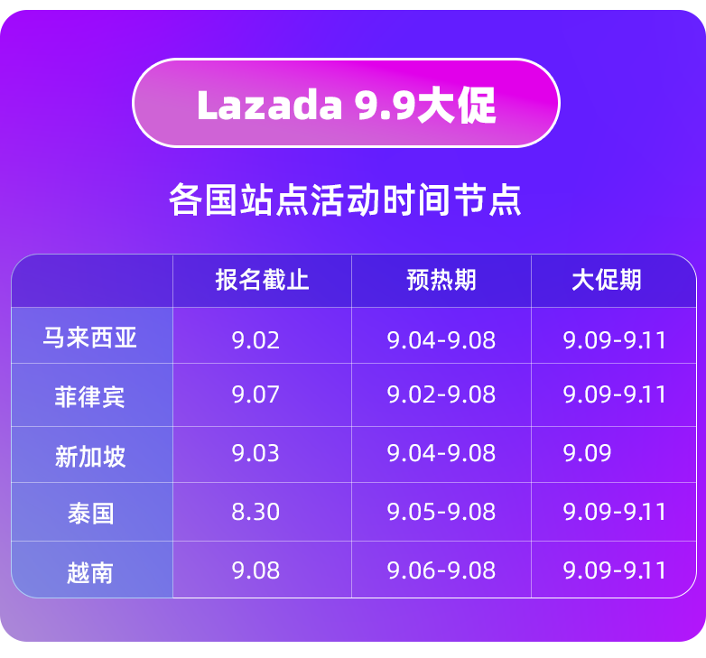 Lazada 9.9时间节点表出炉!大促玩法详解直播约起来~