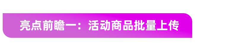 商品提报大促活动在此前的大促中商家只能选择手动添加商品,但长尾商品SKU繁多,往往耗时耗力。在采纳多商家对于后台的使用习惯后,本次大促商家后台新增商品批量上传功能,商家可通过提报活动模板EXCEL批量上传商品。