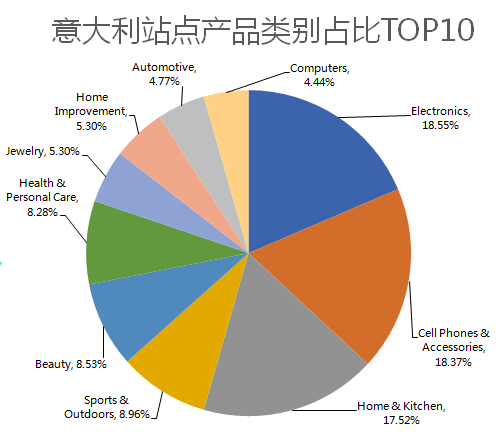 从领码占比看市场趋势 美国 消费者领码占比最多的品类前5分别是: 11.66% (贴心奉上TOP10品类) 美国站上月份前五名领码类品表现可谓不俗,都一跃占据10%以上。其中女性服装占比最多,为16.17%,厨房家居类产品紧随其后,占比达到14.77%,户外运动产品、手机电子配件、美妆占比都在10%以上,分别为12.67%、11.66%和10.18%。 美国市场上,女士服装、美妆类的市场仍然比较大,其次,厨房家居、户外运动类产品在美国人民心中的分量也逐步加重。 英国 消费者领码占比最多的品类前5分别是: Home & Kitchen 20.95% Cell Phones & Accessories (贴心奉上TOP10品类) 回到英国站,居家的英国人仍然发挥着他们的优良传统,厨房家居类产品的占比突破20%,达到20.95%,手机电子配件、电子产品、女性服装、个人护理类产品紧随其后,但是与厨房家居类产品占比相差较大,分别为11.86%、11.11%、10.66和10.39%。 这四个品类在英国人心中仍然占据较大分量。 德国 消费者领码占比最多的品类前5分别是: Home & Kitchen (贴心奉上TOP10品类) 热爱科技、被称为“电子发烧友”国度的德国,电子产品和手机电子配件自然大受欢迎,分别占比18.98%和14.81%,家居厨房类品类也不甘落后,占比约为17.61%,户外运动的销量也持续上涨,占比约为14.32%。 意大利 消费者领码占比最多的品类前5分别是: Electronic (贴心奉上TOP10品类) 在意大利市场上,电子产品与手机电子配件的市场占比最高,分别为18.55%和18.37%,厨房家居用品的市场占比约为17.52%。纵观意大利市场,三大品类占据50%以上市场,或许这个趋势将一直延续。 另外,根据亚马逊内部消息,家居类产品(包括小家电)将成为亚马逊接下来开发和推广的重点,卖家们可千万不要错过哦~ 从品类需求指数排名,看选品趋势 步入7月份,哪些产品会有较大的需求呢,市场又会倾向于哪些品类呢?我们一起来看看吧! 先普及一个小知识,品类需求指数是VIPON平台专业数据分析人员,根据平台品类发码量与全平台发码量对比分析得出的趋势数据,该数据以百分比的形式输出,反应亚马逊买家对Vipon上某一品类的需求程度,>100%且分值越大,表示需求相对越大;<100%且分值越小,表示需求相对较小。 美国站品类需求前三名的是: 在需求方面,通过数据,不难看出,个人护理类产品,在美国市场的需求量最大;电子产品紧随其后,仍有非常大的市场;美妆不仅占比较大,需求也是有增无减,或许会成为接下来的“蓝海黑马”;家居装饰、儿童玩具及游戏的需求量也不小,卖家可以在这个方面多下功夫! 英国站品类需求前三名的是: 回到需求方面,个人护理类在英国站的需求远超其他产品,需求指数超过200%,来到了211.8%,做英国站的卖家可以留意一下这个品类,市场潜力巨大哦~此外,家居装饰、美妆、电子产品也是英国民众需求量比较大的产品,或许在接下来会有不俗的市场表现! 德国站品类需求前三名的是: 德国市场是欧洲市场中潜在的蓝海市场,典型的受众多,卖家少。而且需求品类也是比较明确的。电子产品,一直占据德国市场的大半江山。电脑相关产品也是深受德意志人民的喜欢。个人健康护理、家居装饰、手机配件、玩具等品类也在德国市场有着极大的需求量。专注小站点的卖家可以研究一下这些品类,或许下一个爆款就在其中! 意大利站品类需求前三名的是: 129.89% 意大利市场一直是个令人惊喜的市场,这种惊喜并不仅仅在于市场的容量与购买力的巨大,还在于竞争的激烈远没有想象中的那么残酷,温和的意大利市场成为很多专注小站点的卖家的首选。而在6月份的数据中,意大利市场仍然是四个站点中,需求品类与需求指数最高的站点。电子产品、家居装饰、电脑相关产品、个人护理的需求指数都超过120%,美妆与厨房家居用品的需求指数接近120%,可谓是欧洲各国中最大的蓝海市场! 从这份报告中,结合Prime Day各个站点的表现,我们不难发现,德国、意大利等欧洲小站点实在属于粥多僧少,市场的潜力巨大,然而竞争又没有想象中那么激烈,总体而言是比较适合发掘的蓝海市场,卖家可要把握机会哦~ 不知道这份报告对各位接下来如何选品有没有新的帮助呢?欢迎来评论区和小编一起讨论哦!# 品类 占比 1 Women's Clothing 16.17% 2 Home & Kitchen 14.77% 3 Sports & Outdoors 12.67% 4 Cell Phones & Accessories 5 Beauty 10.18%