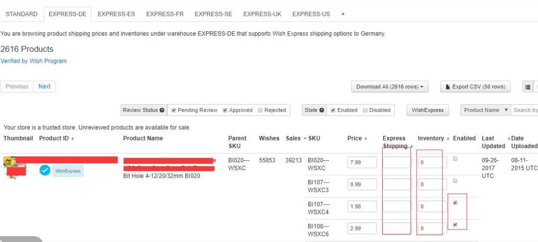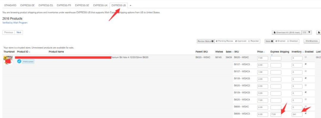 当你成功申请了Wish Express海外仓,并且已经将货物运到了相应的仓库,接下来就是通过独立库存工具设置各个仓库的产品库存及运费啦~