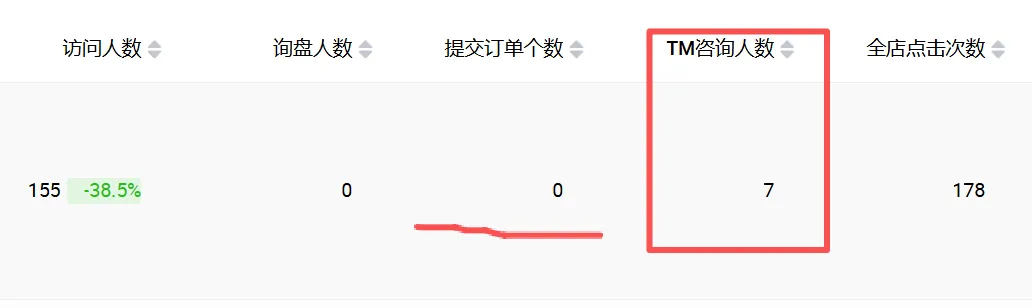 【全店点击次数,访问人数,询盘人数,TM咨询人数,提交订单个数】
