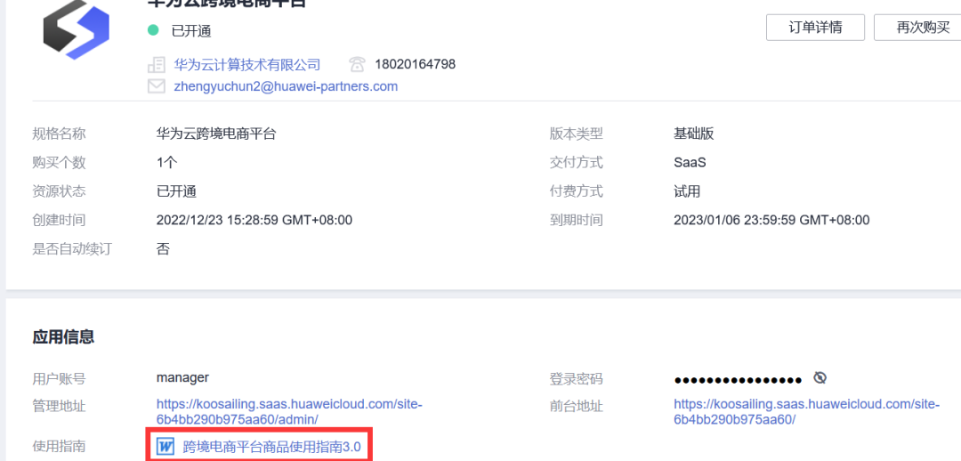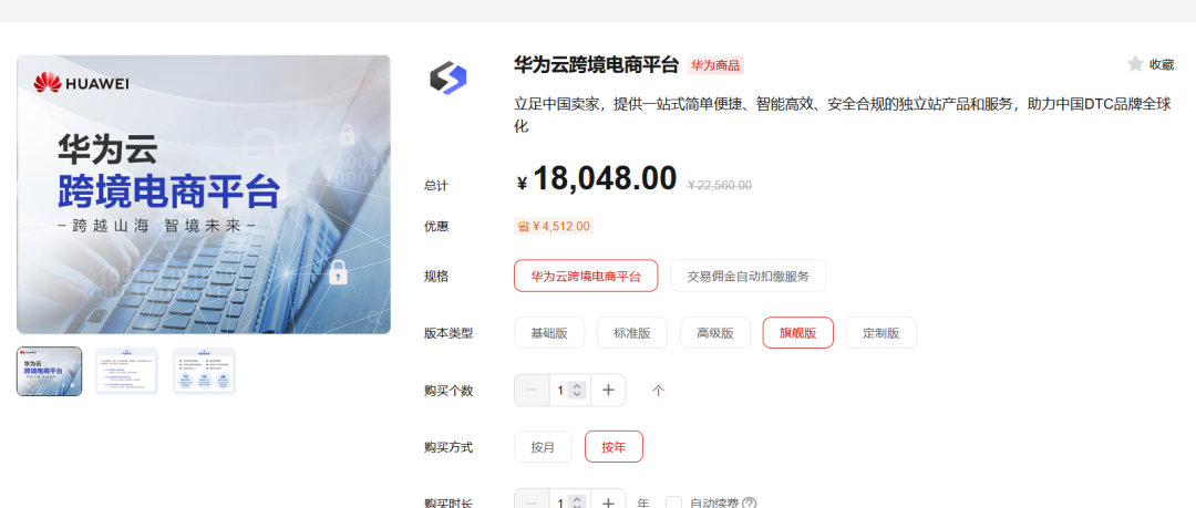 下面是华为云市场里面的一个产品名称叫:华为云跨境电商平台