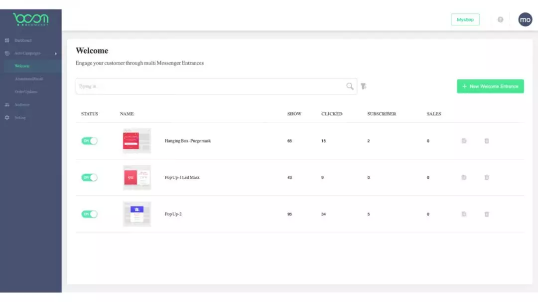 2. 增长用户池:通过吸引访客订阅您的Messenger list,BoomCart能为您获得更多可用于再营销的用户,节省获取新客的广告费用。