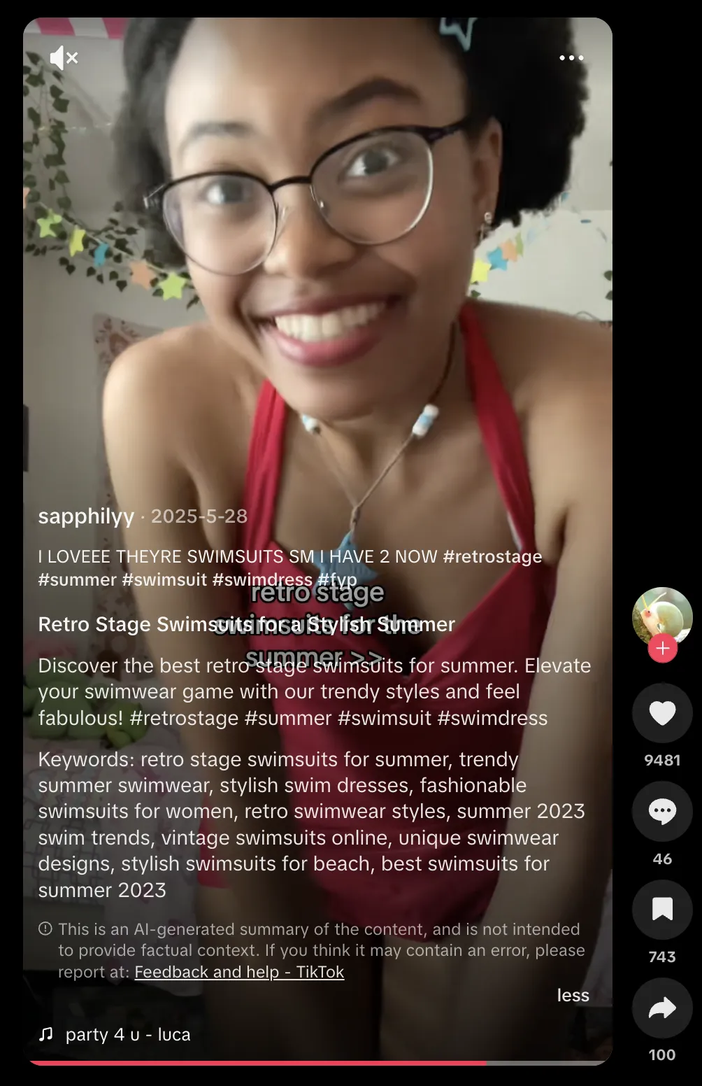 视频文案直击痛点,通过“Retro Stage 夏季泳装”等核心关键词,迅速将产品定位在“夏日必备”与“复古时尚”的交叉点。
