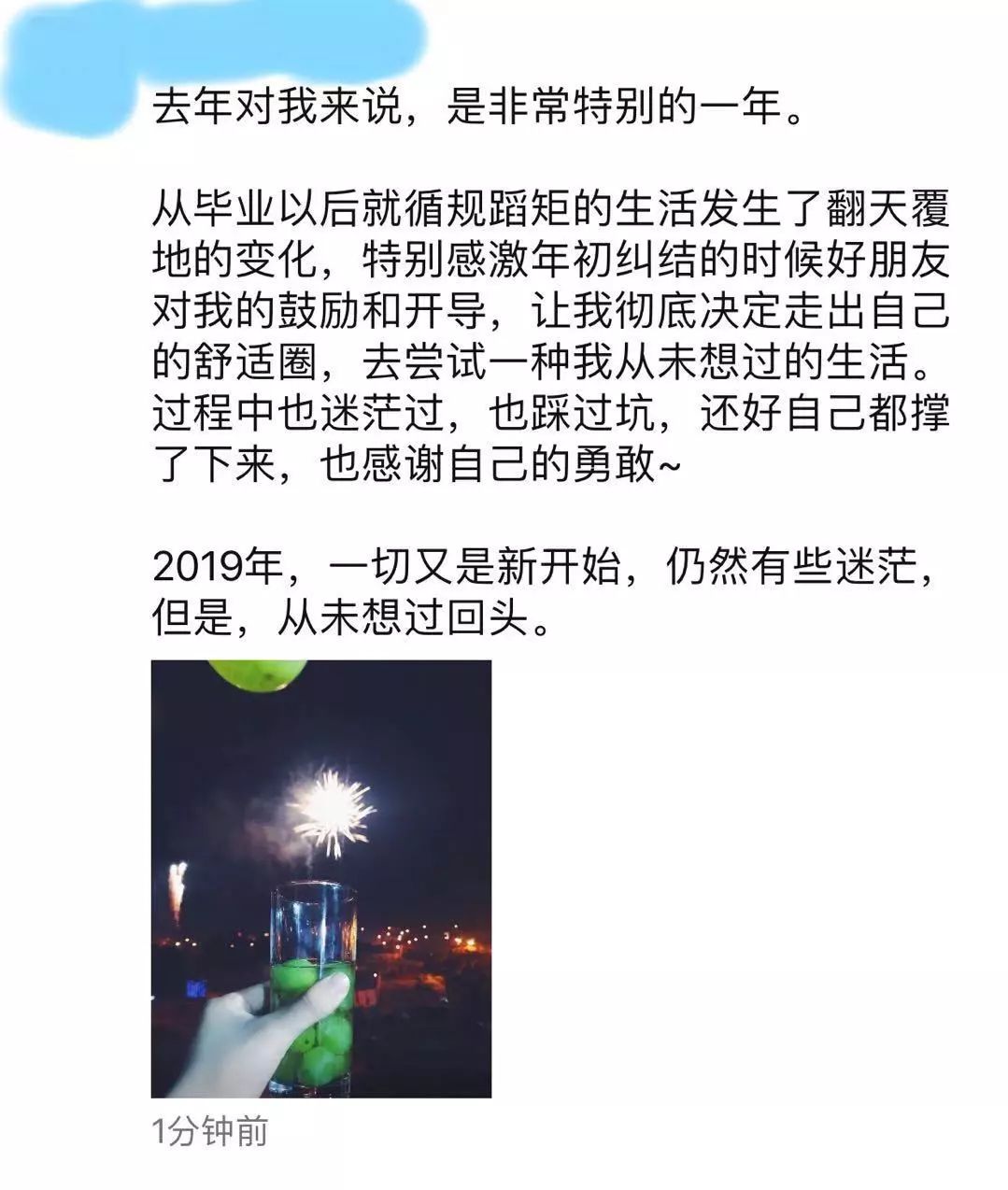 前两天跨年的时候,打开朋友圈,基本上全是对去年的总结和对新年的展望,在大家漫天的flag和祝福里,我也看到了我的好友小柳发的朋友圈。