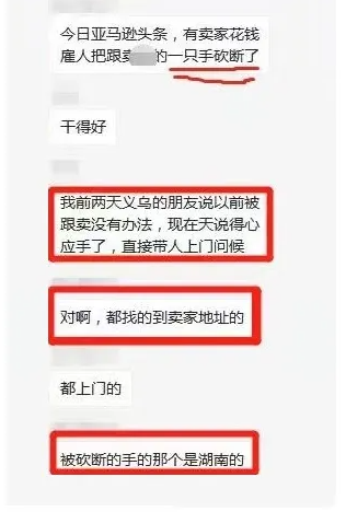 当时在一个卖家群里曝光出该跟卖者被砍的大致经过:原来义乌有个卖家被跟卖的没有办法,在找到跟卖卖家地址后就直接带人上门问候,说被砍断手的那个是湖南的。(仅供参考,该事件真实情况请大家自己核实)