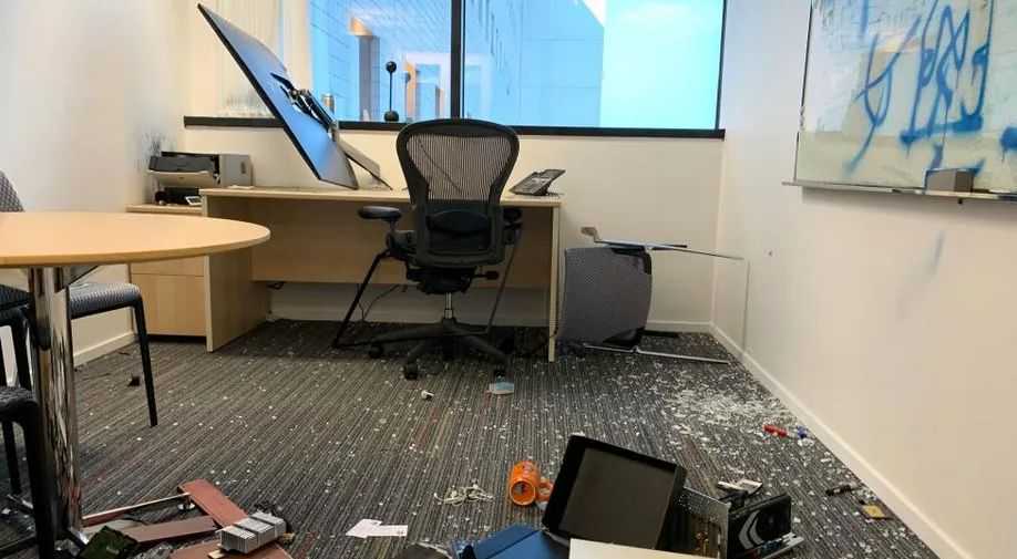 随后与这个跟卖进行了多次沟通和斗争之后,该卖家最终忍无可忍的找到了跟卖的公司,随后大家就看到了上图这个画面:跟卖的办公室被砸,跟卖的人头上挨了几拳。。。