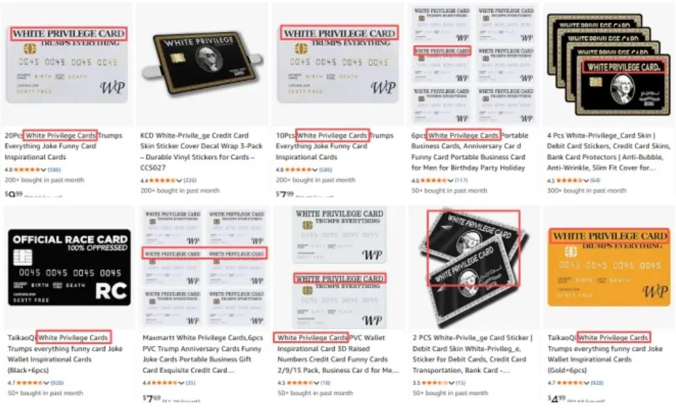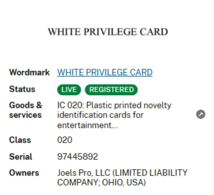 涉案商标 “WHITE PRIVILEGE CARD” 已核准注册在第20类,主要是娱乐用途的塑料印刷新奇标识卡,未编码且无磁性,商标号7055199。在亚马逊前台搜索该词汇发现有不少产品在用,若有销售同类产品,需警惕侵权风险。