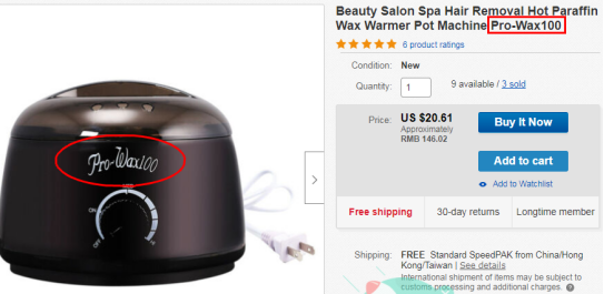 Pro-Wax100是一家广东中山品牌,致力于研发生产、销售熔蜡机、蜡豆、加热器及其相关配件产品。该品牌官网为:https://www.pro-wax-100.com/,官网上所展示的商标及产品图案早已被原告登记注册,卖家朋友如果擅自使用,则可能因构成侵权而被诉: