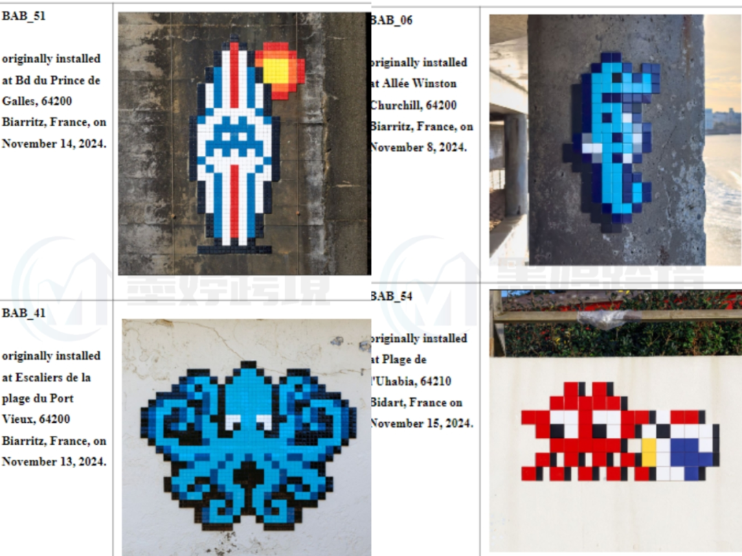 Franck Slama 的作品辨识度极强,尤其是像素风的外星人、卡通人物和几何拼贴图案,经常出现在装饰画、帆布印刷、服饰、手机壳、玩具、贴纸等商品中。未经授权使用相关图案,很容易触碰版权红线,卖家需格外注意,避免因侵权导致商品下架或 TRO风险。