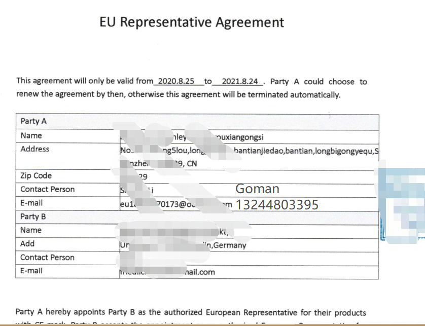 02、制造商的名称和联系地址,或者,如果进口商不在欧洲经济区,请提供授权代表或进口商的名称和联系地址。