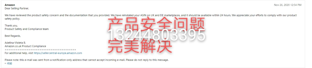 关于欧洲产品安全性问题,给了材料还不够,继续进行申诉,高文提醒,假如需要移仓的还需要按照亚马逊要求进行移仓。部分特别恶劣的产品投诉会直接导致移仓。但是也有成功案例!比如说Goman的一个客户,因为该问题直接下架,欧洲站经过Goman团队2天时间,一番操作猛如虎,英国德国马上回来了。