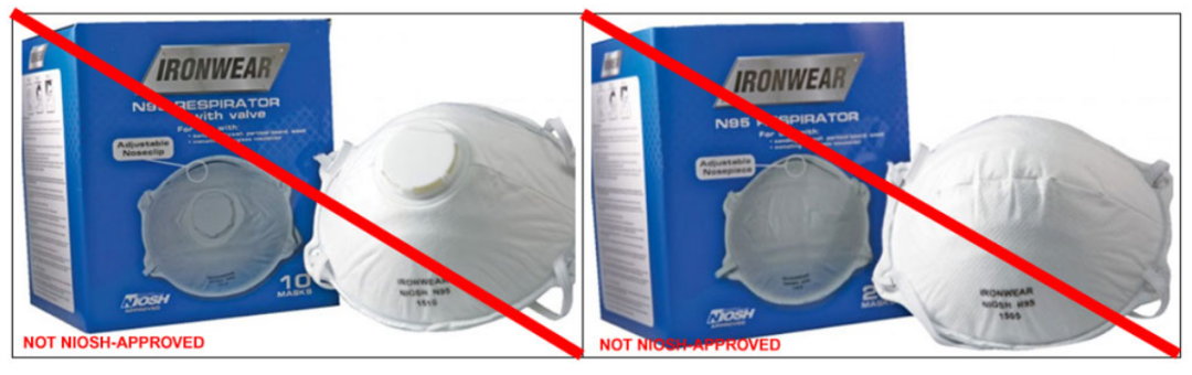 1. Ironwear品牌生产的型号为1505和1510的口罩,其未经美国NIOSH批准。