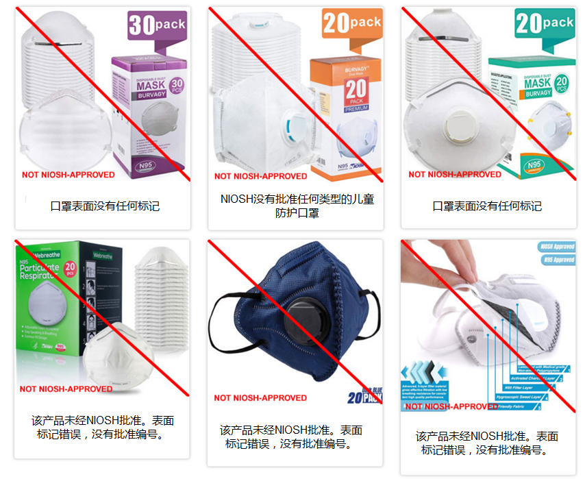 还有以下若干产品,都被CDC指出是为未经过NIOSH认证的产品: