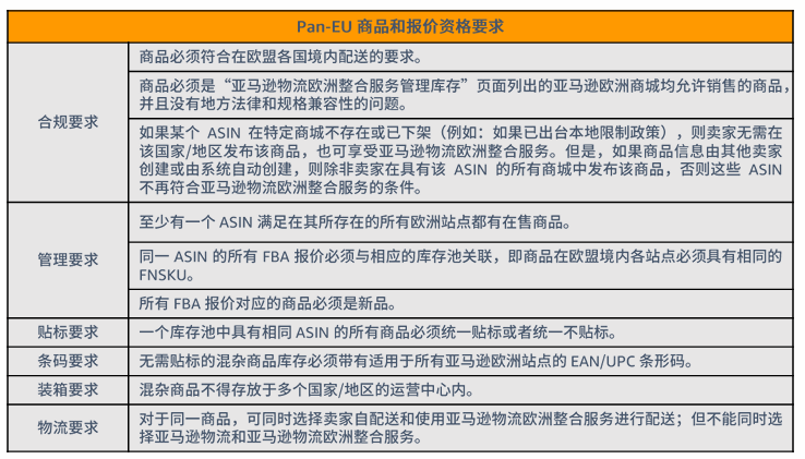 1.参与 Pan-EU 要受到亚马逊物流欧洲整合服务政策、亚马逊服务欧洲商业解决方案协议、亚马逊国际卖家准则和亚马逊计划政策的约束。