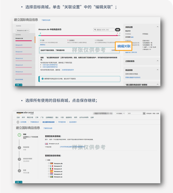 2.卖家账户须在 amazon.de、amazon.fr、amazon.it 和 amazon.es 保持正常状态;