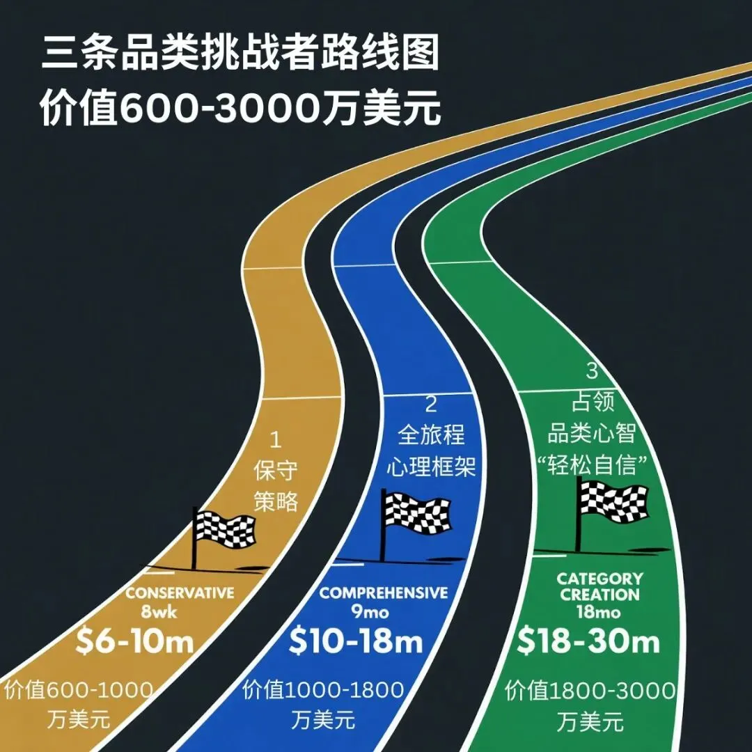 2)全旅程心理框架路线图:价值 1000-1800 万美元,6-9 个月达成行业 2.5% 的转化率水平,构建全链路心理沟通体系;