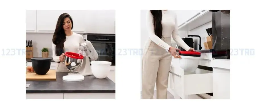 1.衬垫能严丝合缝贴碗内壁、边搭在碗口,还有个带两道凸棱的倒料口;