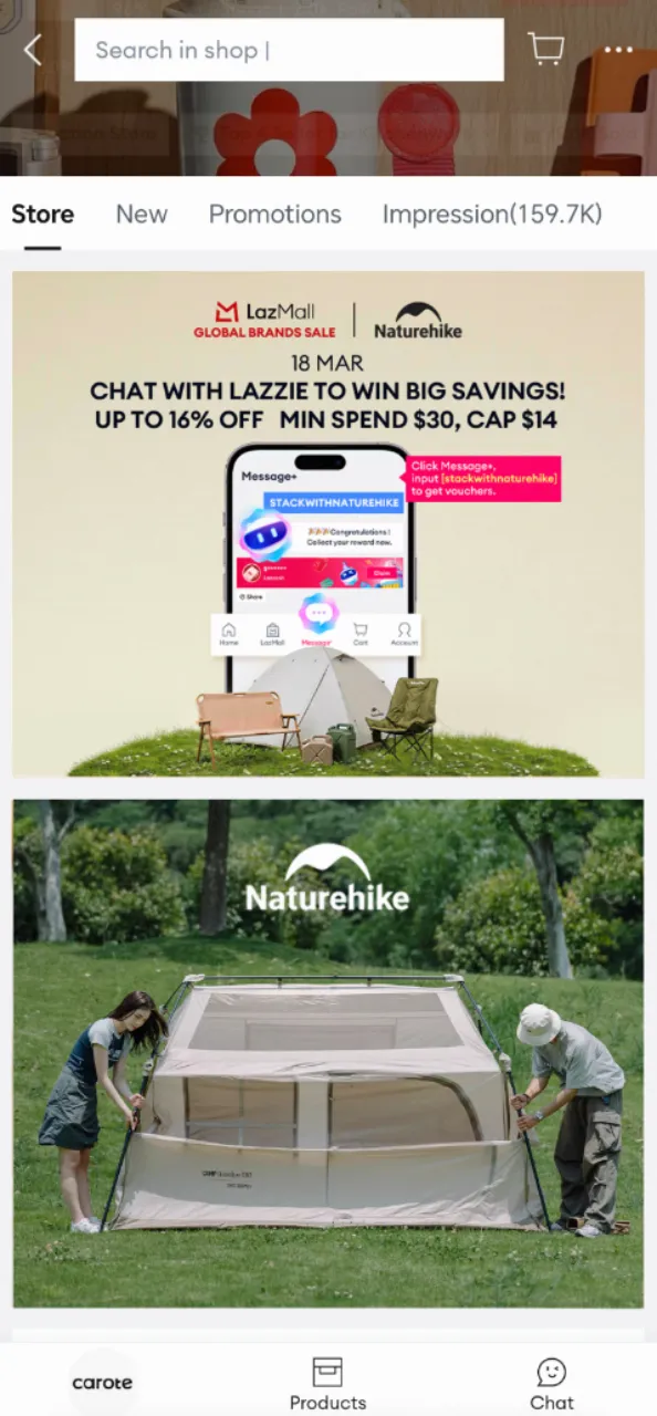 这几天,在东南亚电商平台Lazada举办的“天猫品牌日”活动中,来自中国的挪客(Naturehike)、卡罗特(carote),以及国际品牌Stanley、城野医生等百余家天猫店铺集中亮相。依托站内多场景曝光与AI精准营销,参与商家触达了大量东南亚消费者,品牌日期间商家销售额较平日实现翻倍增长。