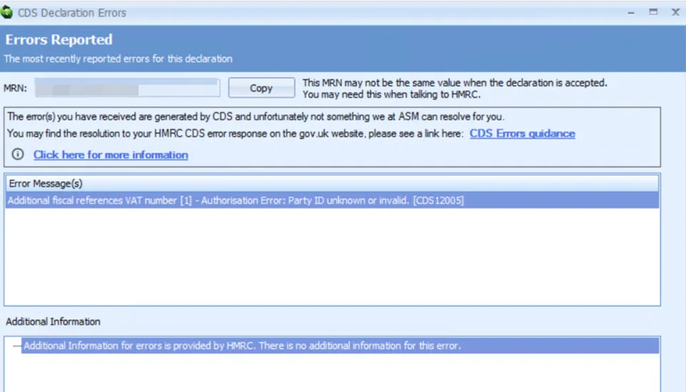 ① CDS12005 – Authorisation Error: Party ID unknown or invalid