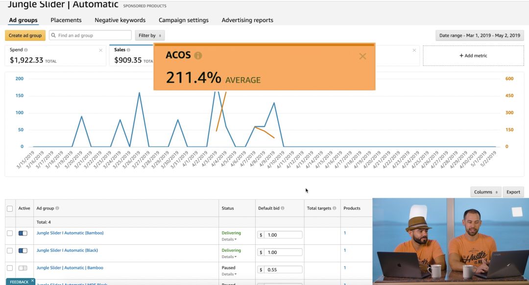 我们能看到,Jungle Slider自动广告的ACoS很高,已经超过了200%。